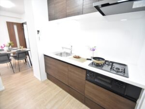 システムキッチン・ユニットバス新規交換、浴室乾燥機新規設置、フローリング・壁天井クロス張替・玄関収納新規設置・照明新規設置箇所あり・ハウスクリーニング他